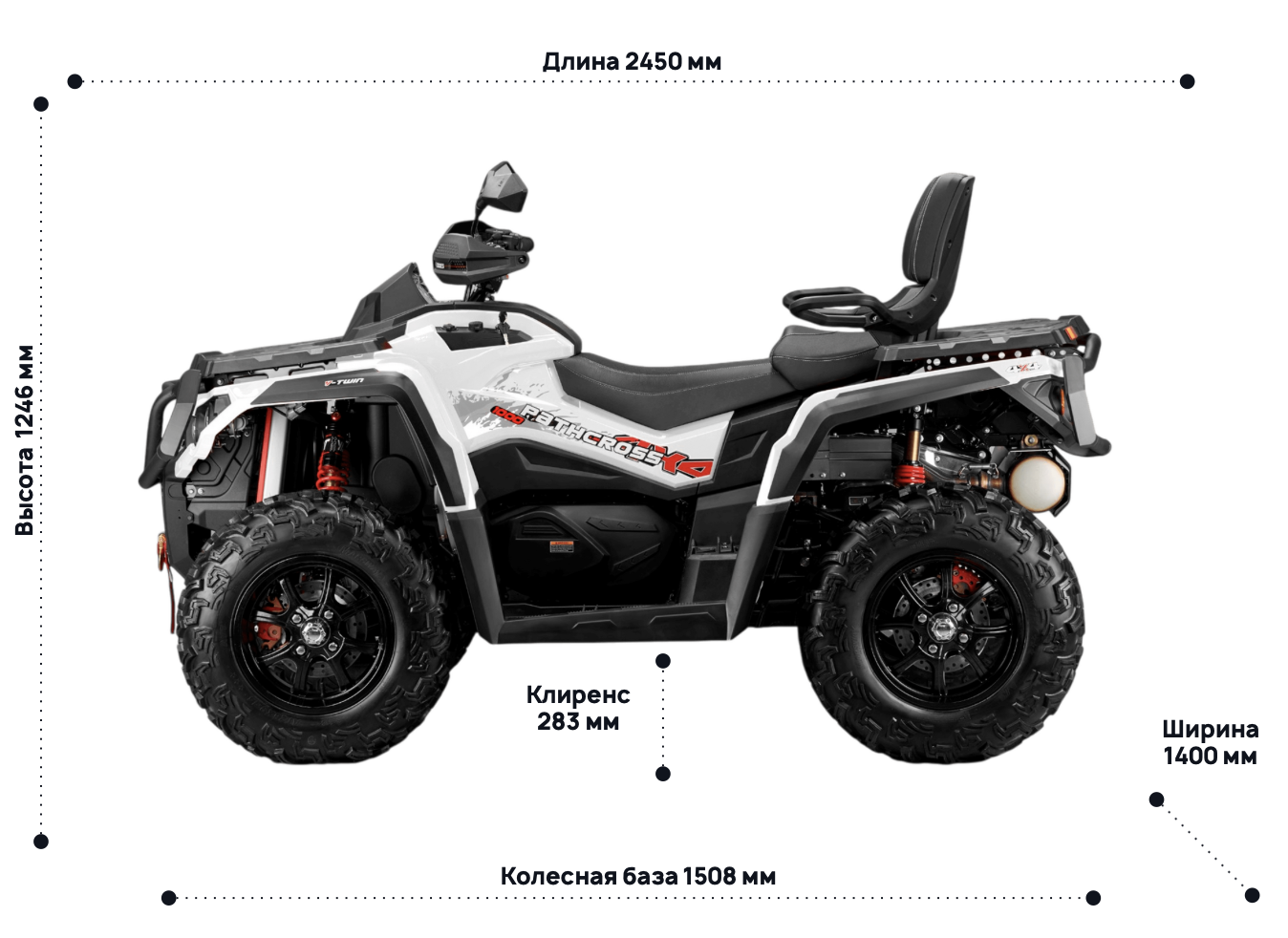 • Длина × Ширина × Высота - 2450 × 1246 × 1400 мм